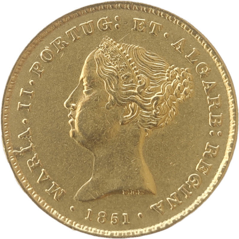 Moeda de Portugal em ouro, 2.500 réis de D. Maria II – 1851
