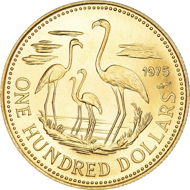 Bahamas 1975, 100 Dólares ouro – Independência