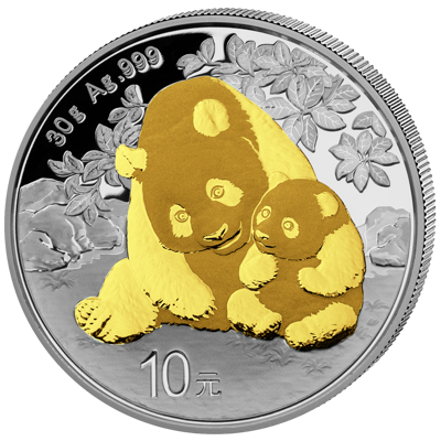 China 2024, 10 yuan – 30g de prata fina – Panda – DOURADA