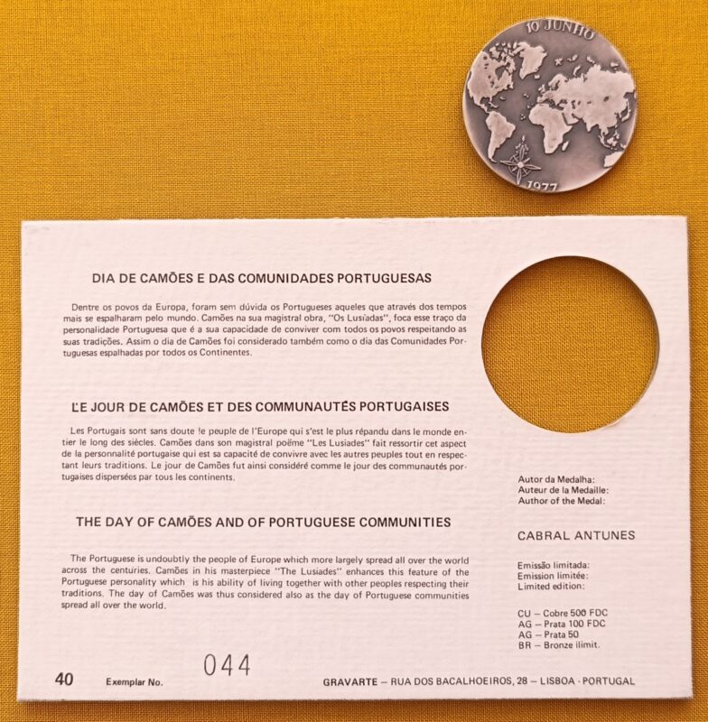 Medalha em prata, 10 de Junho. Dia de Camões e das Comunidades