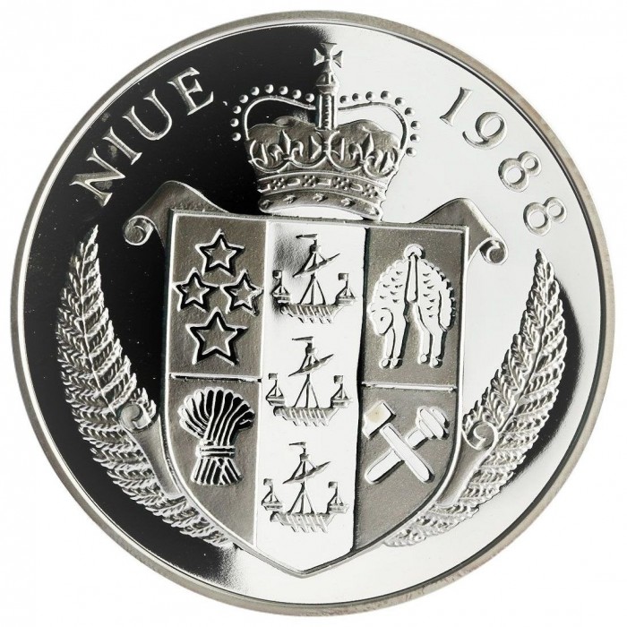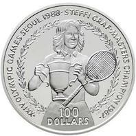Niue 1988 – 5 Onças (5 oz) de prata fina – Jogos Olímpicos de Seul – Ténis, Steffi Graf