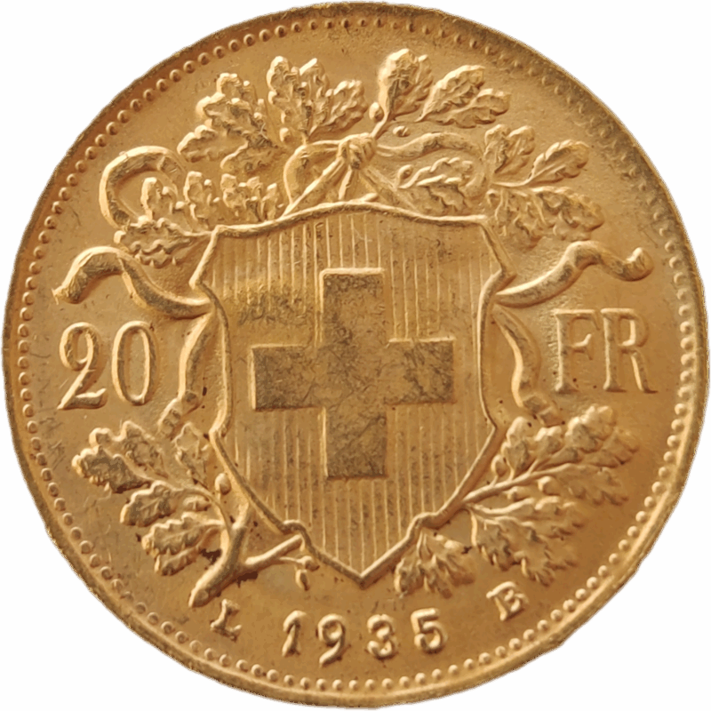 SUÍÇA, 20 Francos – 1935 L B